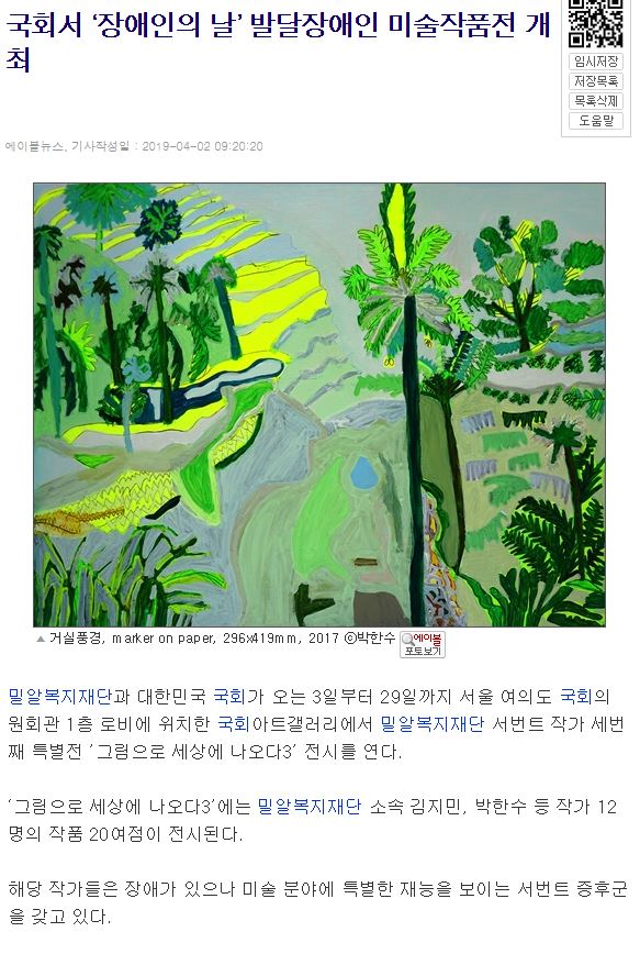 [크리스천투데이] 밀알복지재단-국회, '서번트 증후군' 발달장애인 미술작품전 개최