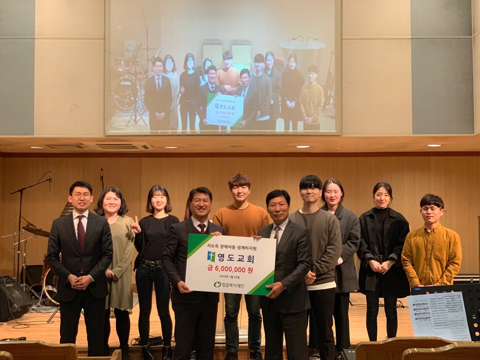 기부금은 성탄절을 맞아 영도교회 청년들이 모은 성금으로, 생계비 지원이 시급한 저소득 장애아동가정을 위해 마련됐다.
