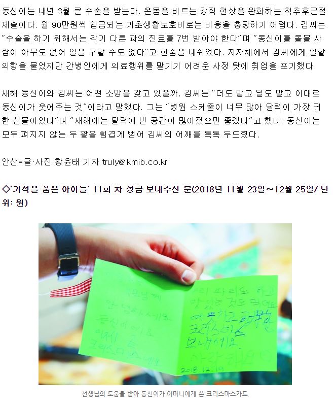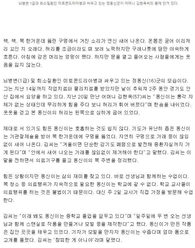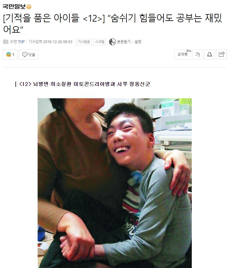 [국민일보] [기적을 품은 아이들 <12>] “숨쉬기 힘들어도 공부는 재밌어요”