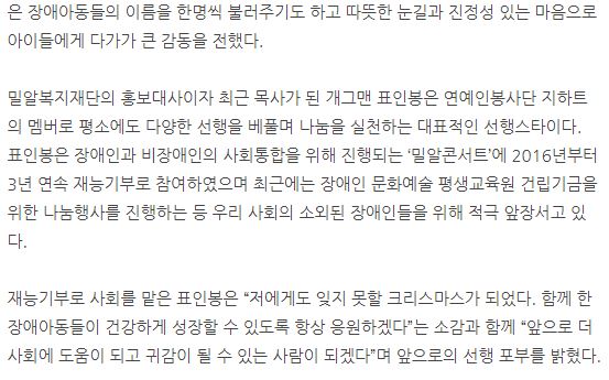 [뉴스웍스] 표인봉, 크리스마스 맞아 특별한 재능기부 펼쳐