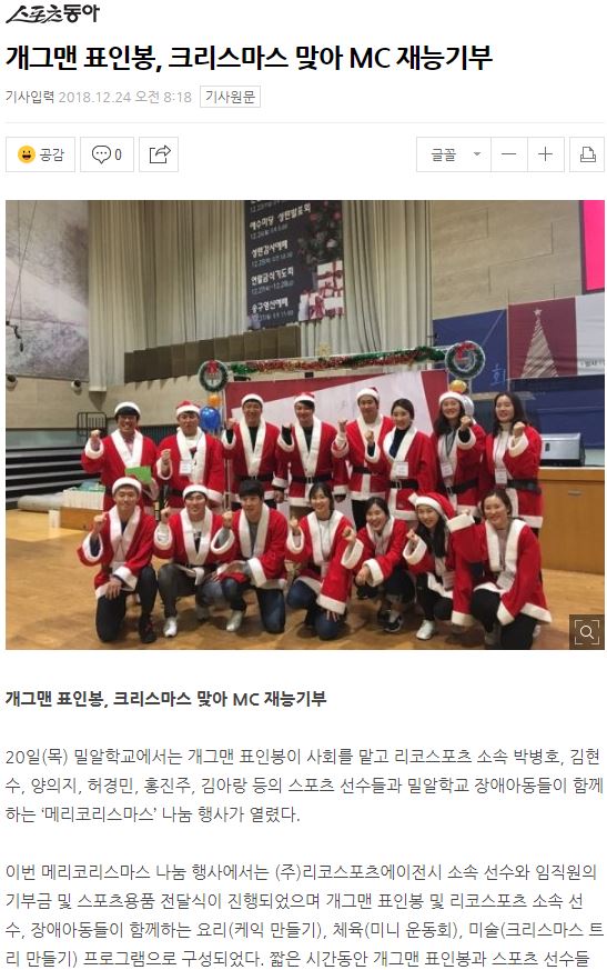 [스포츠동아] 개그맨 표인봉, 크리스마스 맞아 MC 재능기부