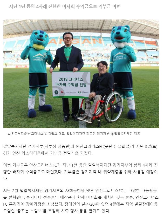[크리스천투데이] 안산그리너스FC 경기지역 취약계층 위해 기부