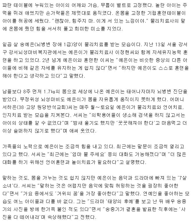 [국민일보] [기적을 품은 아이들 <11>] 하나님이 몸과 마음 열어 주시길 기도