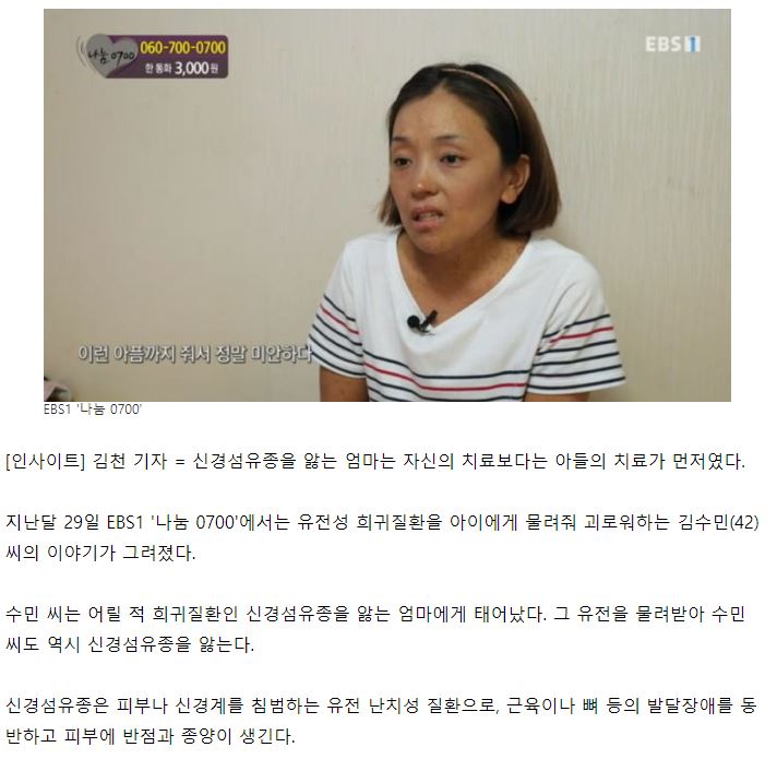 [인사이트] "저보다 아이를 먼저 치료해주세요" 신경섬유종 물려준 죄책감에 치료 포기한 엄마