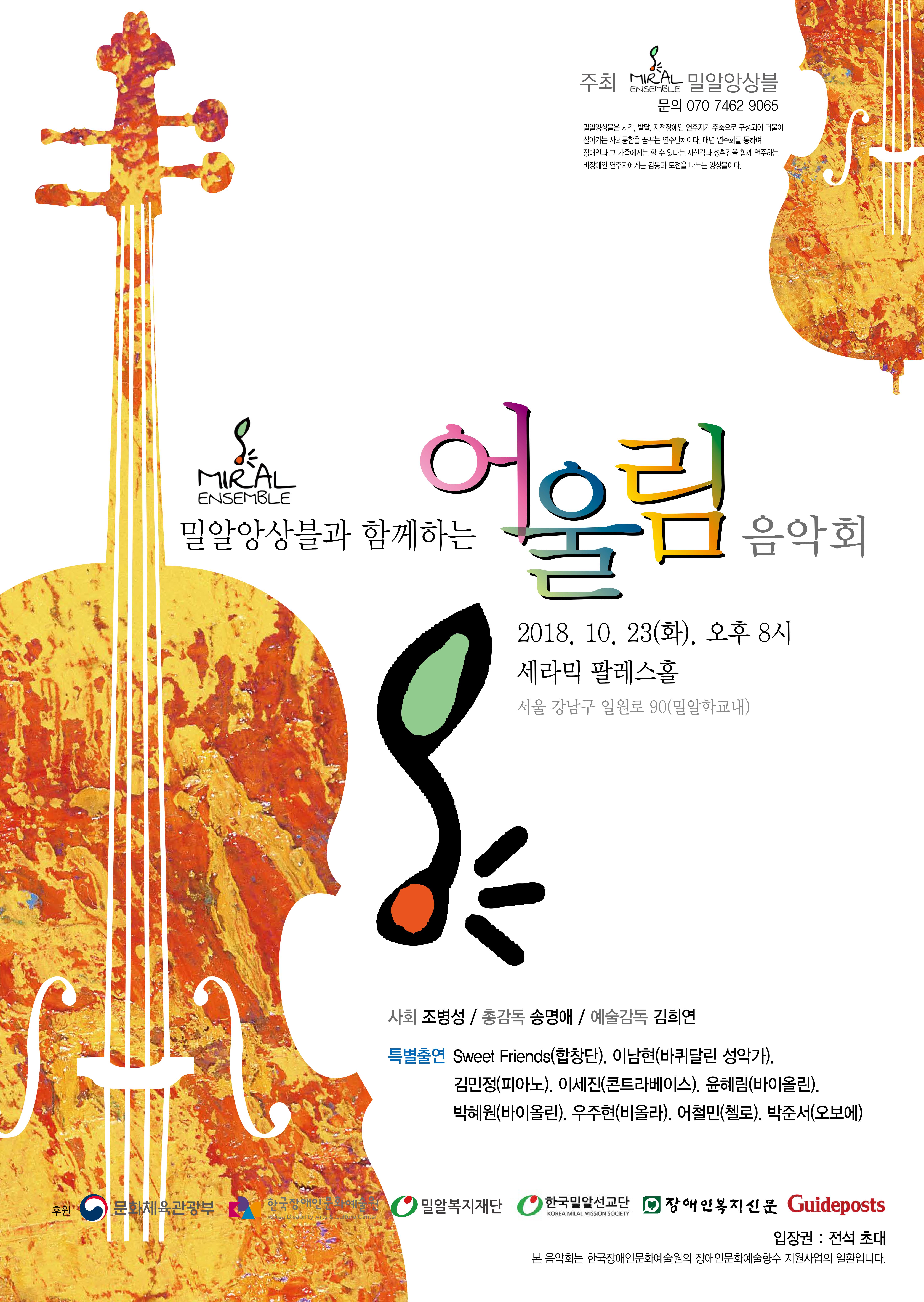 - 밀알앙상블, 음악 전공한 장애인 연주자로 꾸려진 클래식 앙상블... 장애인 연주자 저변확대와 장애인식개선위해 활동