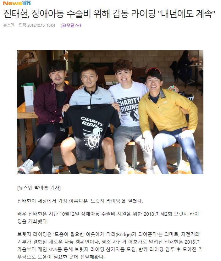 [뉴스엔] 진태현, 장애아동 수술비 위해 감동 라이딩 “내년에도 계속”
