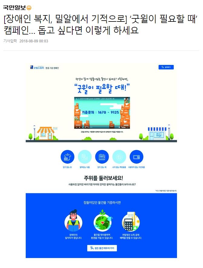 [국민일보] [장애인 복지, 밀알에서 기적으로] ‘굿윌이 필요할 때’ 캠페인… 돕고 싶다면 이렇게 하세요