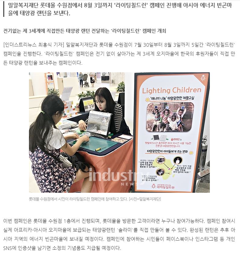 [인더스트리뉴스] 이번 여름에도 태양광 랜턴 만들어 빛을 선물하세요