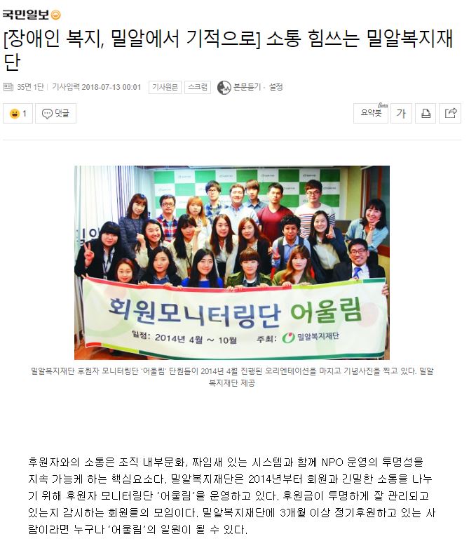 [국민일보] [장애인 복지, 밀알에서 기적으로] 소통 힘쓰는 밀알복지재단