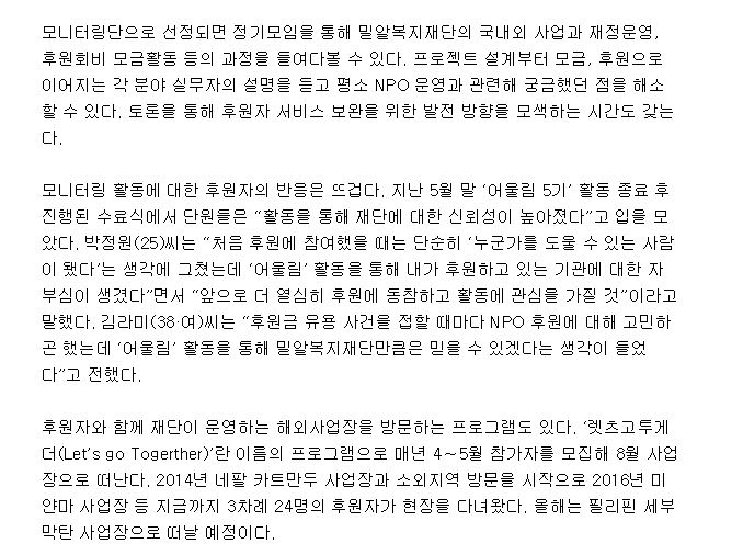 이전 [국민일보] [장애인 복지, 밀알에서 기적으로] "투명성은 NPO 생명줄… 기부 받은 100원짜리 동전까지 기록" 다음 [중앙일보] [NPO브리핑] 물품 기증으로 장애인 일자리 만드는 ‘굿윌이 필요할 때’ 캠페인