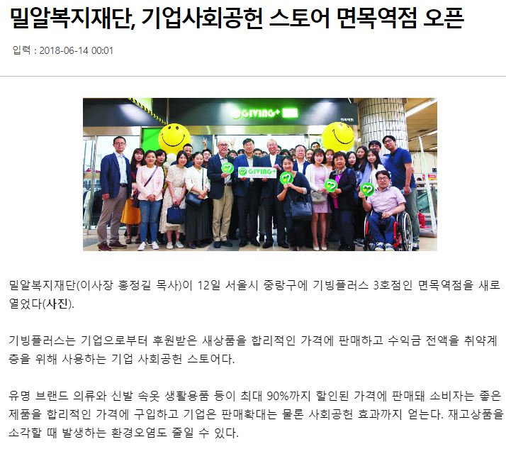 [국민일보 외 6건] 밀알복지재단, 기업사회공헌 스토어 면목역점 오픈