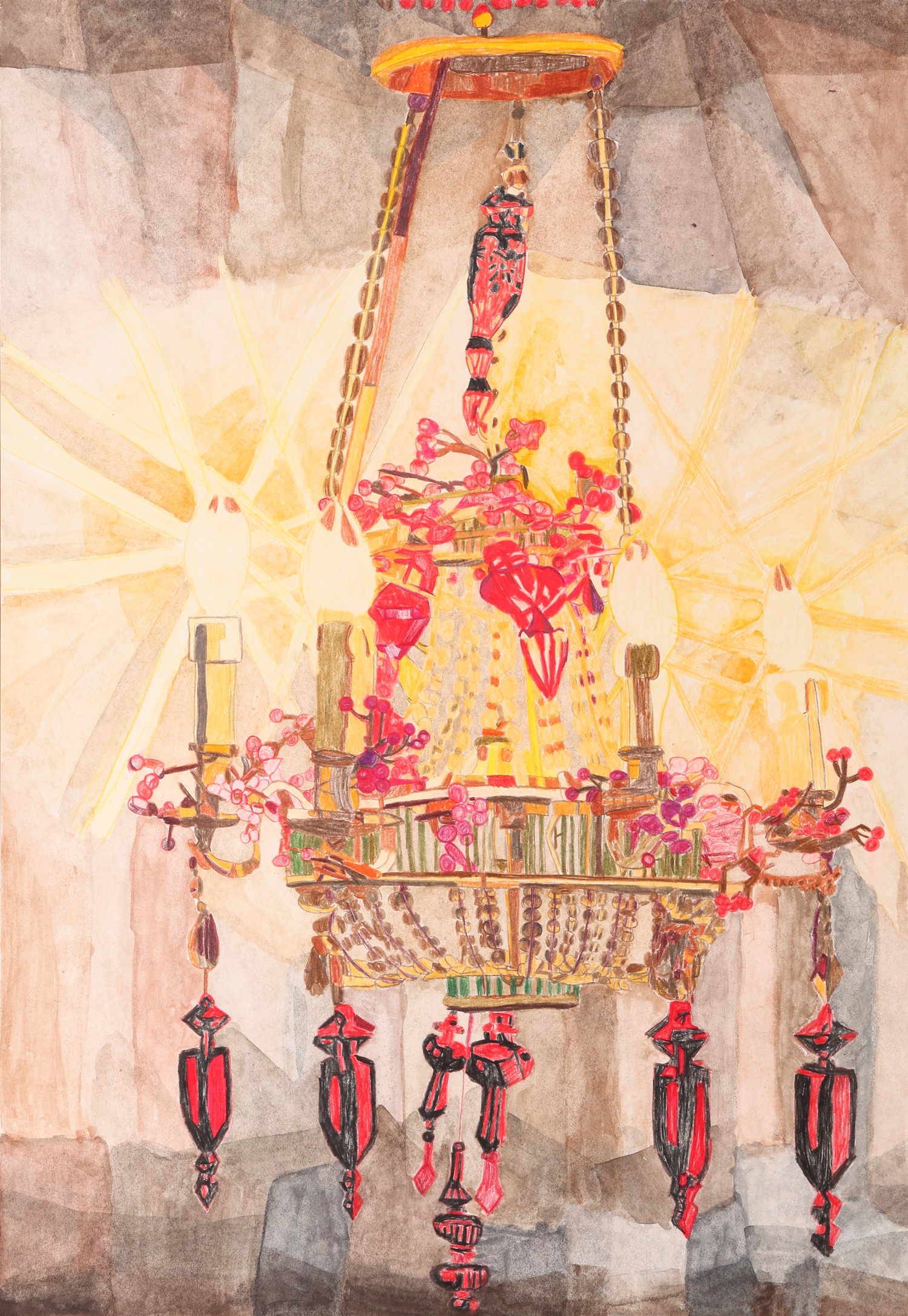 작품1. 정지훈, 샹들리에의 빛, WATER COLORS, COLORED PENCIL ON PAPER, 780x534mm, 2017