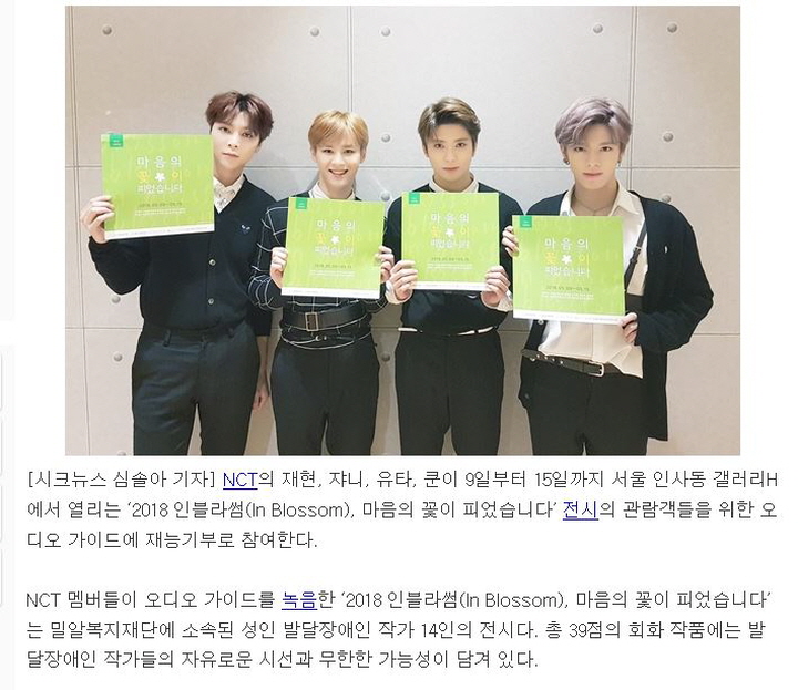 [시크뉴스 외 1건] NCT, 장애인예술가 ‘인블라썸’ 전시 오디오 가이드 ‘목소리 재능기부’
