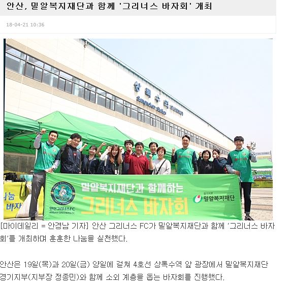 [OSEN] 안산, 밀알복지재단과 함께 '그리너스 바자회' 개최