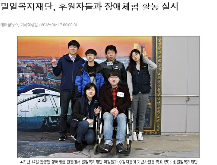 [에이블뉴스] 외 1건 밀알복지재단, 후원자들과 장애체험 활동 실시