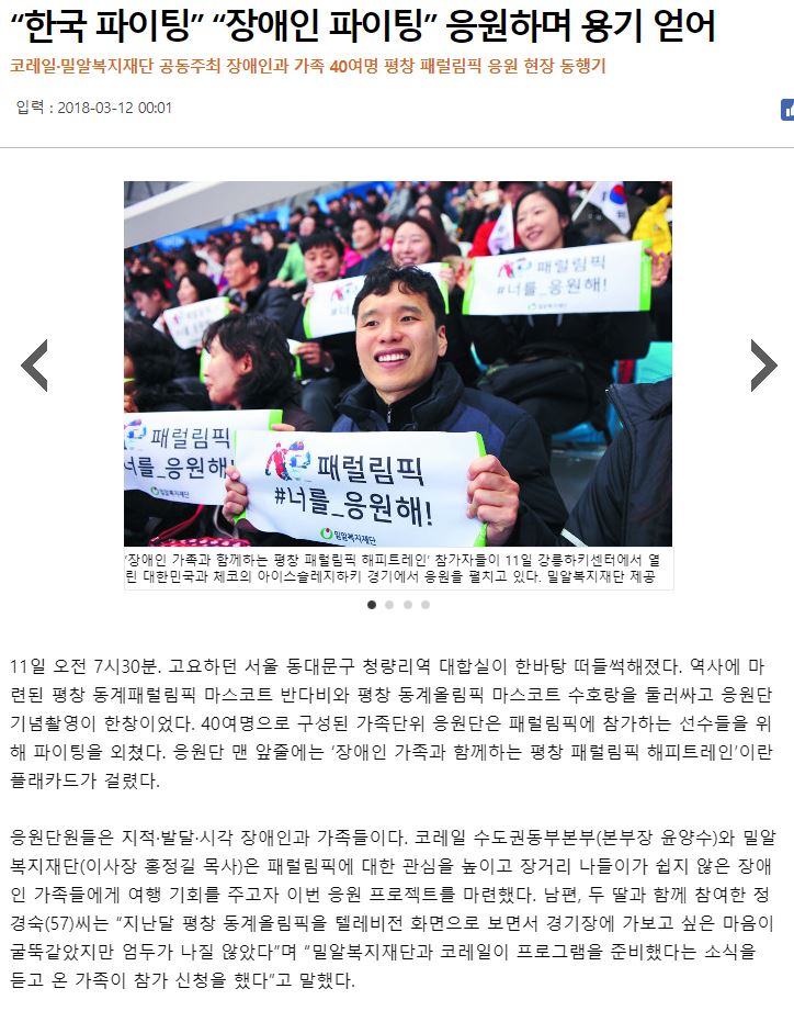 [국민일보] “한국 파이팅” “장애인 파이팅” 응원하며 용기 얻어