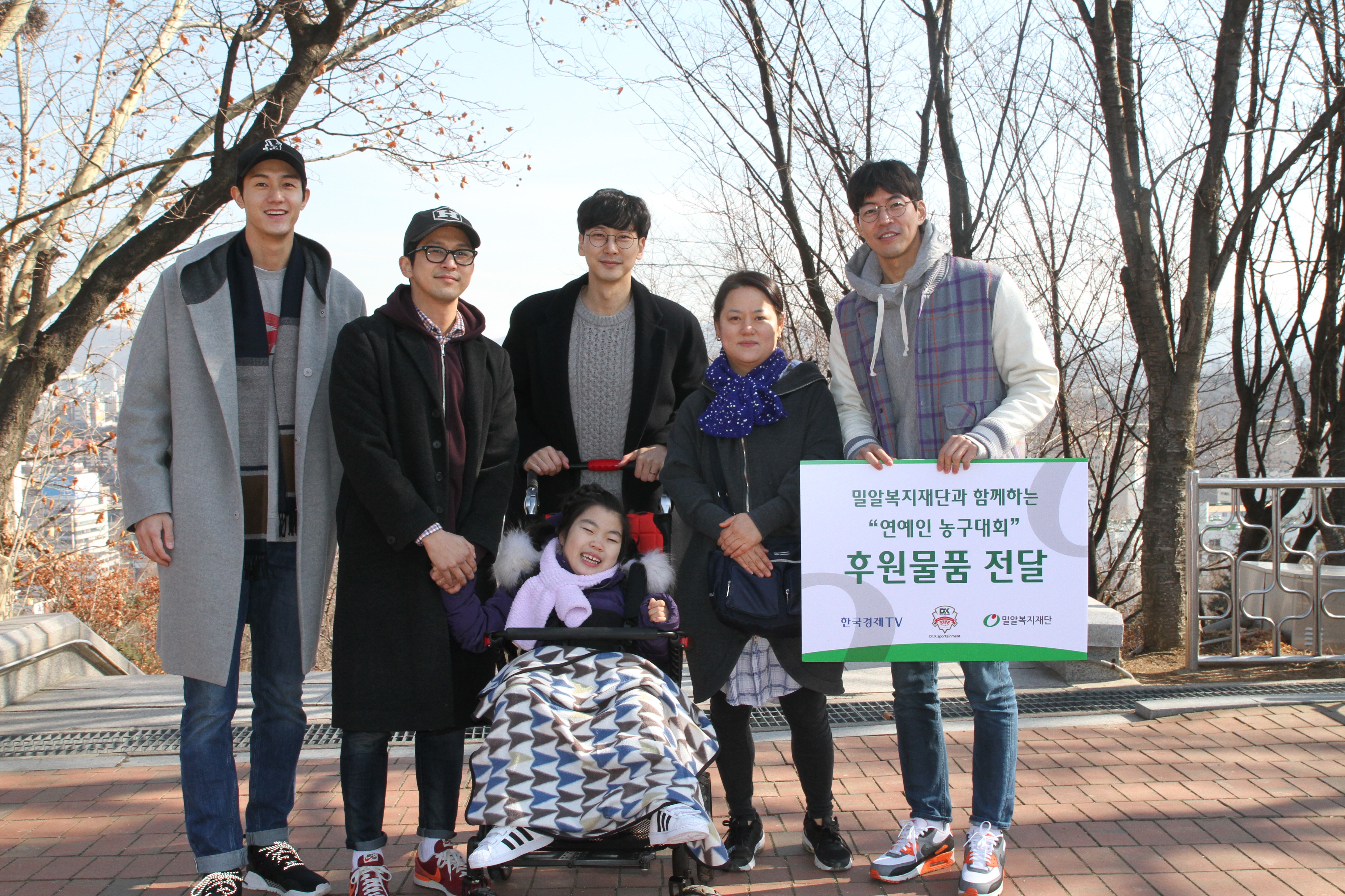 밀알복지재단(이사장 홍정길)과 연예인 농구단 소속 배우들이 지난 2일 오후 성남시 수정구에 위치한 희망대공원에서 후원품 전달식을 가졌다.