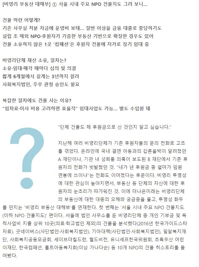 [조선일보] [더 나은 미래] 비영리단체 상위 10곳 중 9곳… 사옥을 직접 소유한 까닭은?
