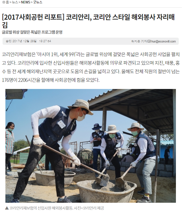 [이코노믹리뷰] [2017사회공헌 리포트] 코리안리, 코리안 스타일 해외봉사 자리매김