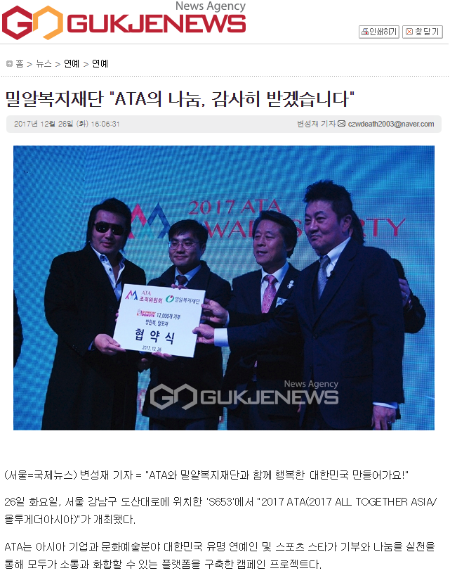 밀알복지재단 "ATA의 나눔, 감사히 받겠습니다" <국제뉴스 기사보기>