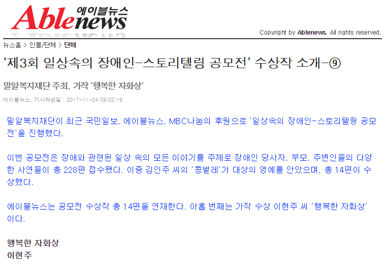 [에이블뉴스] ‘제3회 일상속의 장애인-스토리텔링 공모전’ 수상작 소개-⑨