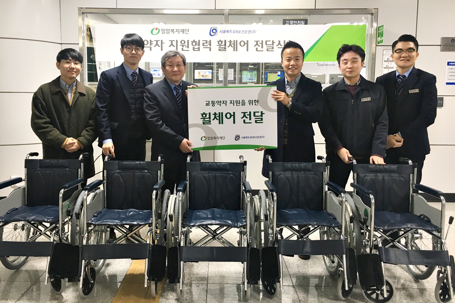 밀알복지재단에서 전달한 휠체어 5대는 도시철도 9호선 2단계 구간(언주~종합운동장)에 비치돼 장애인과 임산부, 노인 등 거동이 불편한 교통약자들을 위해 사용될 예정이다.