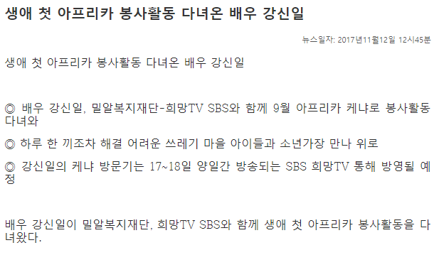 [한국사진방송] 생애 첫 아프리카 봉사활동 다녀온 배우 강신일