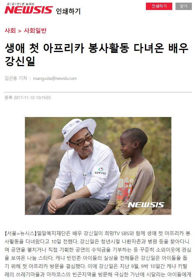 이전 [기독교한국신문] 밀알, 배우 강신일, 희망TV SBS 아프리카 봉사활동 다음 [오센] [Oh!쎈 컷] 강신일, 케냐 쓰레기마을 방문..빈곤아동 희망 전했다