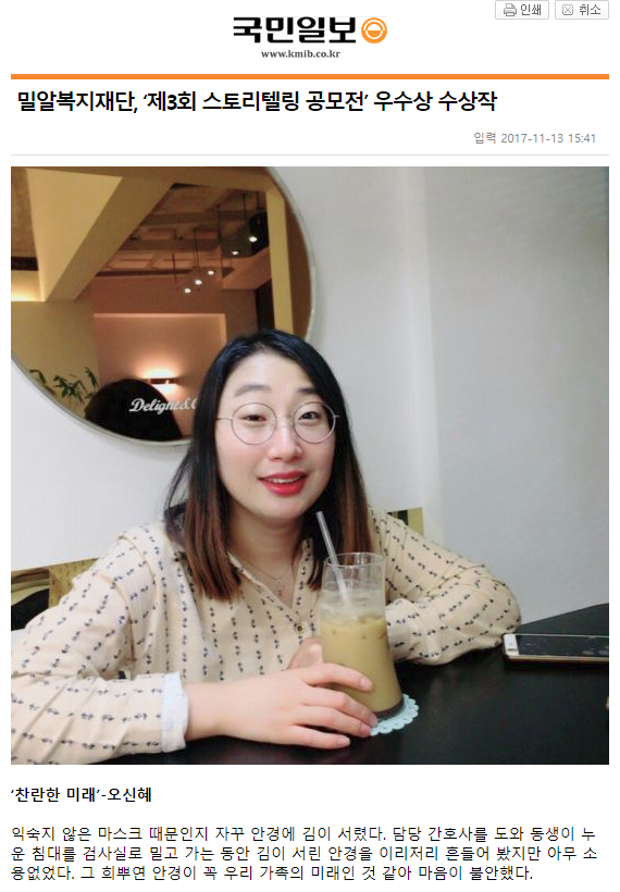 [국민일보] 밀알복지재단, ‘제3회 스토리텔링 공모전’ 우수상 수상작