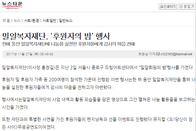 [뉴스타운] 밀알복지재단, ‘후원자의 밤’ 행사
