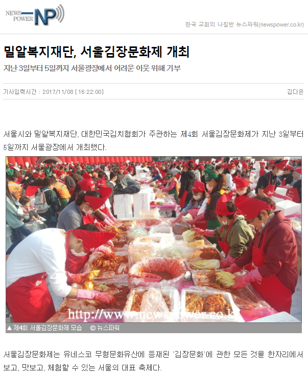 [뉴스파워] 밀알복지재단, 서울김장문화제 개최