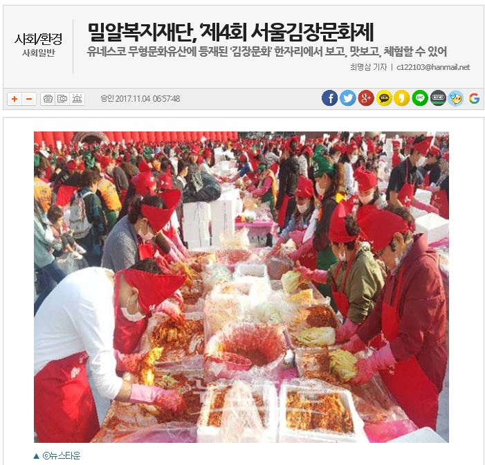 [뉴스타운] 밀알복지재단, ‘제4회 서울김장문화제'