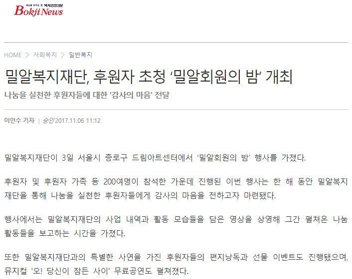 [복지연합신문] 밀알복지재단, 후원자 초청 ‘밀알회원의 밤’ 개최