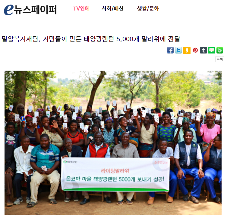 [e뉴스페이퍼] 밀알복지재단, 시민들이 만든 태양광랜턴 5,000개 말라위에 전달