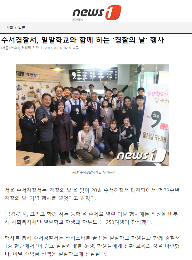 [뉴스1] 수서경찰서, 밀알학교와 함께 하는 '경찰의 날' 행사