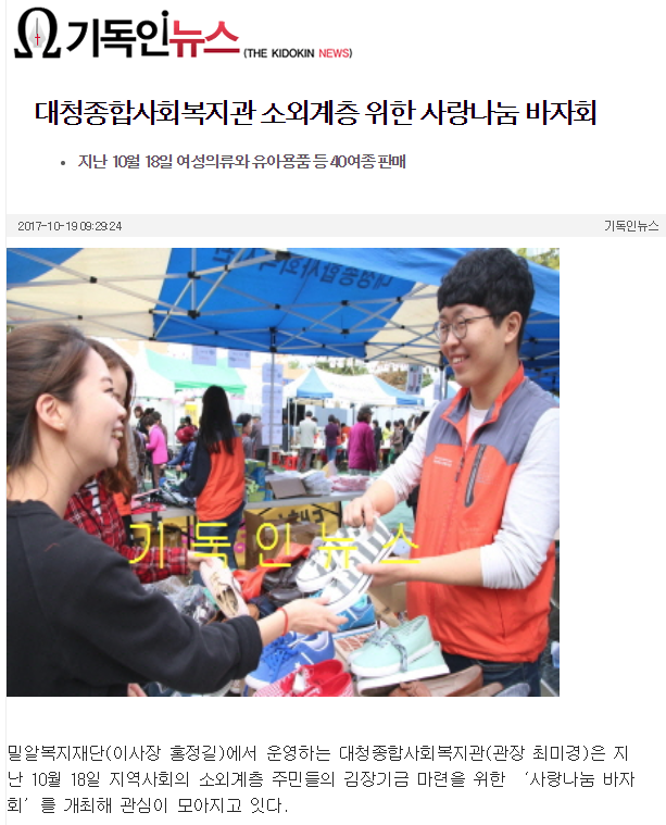 [기독인뉴스] 대청종합사회복지관 소외계층 위한 사랑나눔 바자회