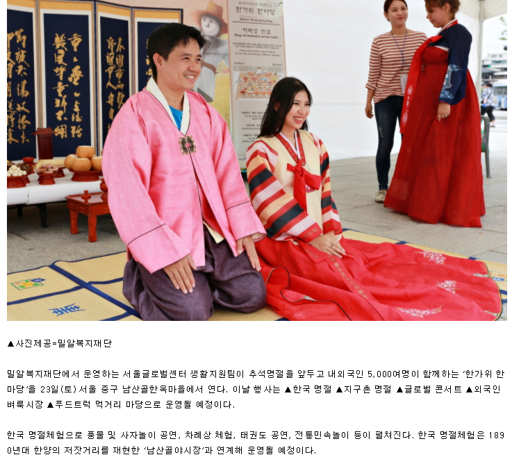 [웰페어뉴스] 서울글로벌센터, 외국인 주민과 남산골한옥마을서 ‘한가위 한마당’