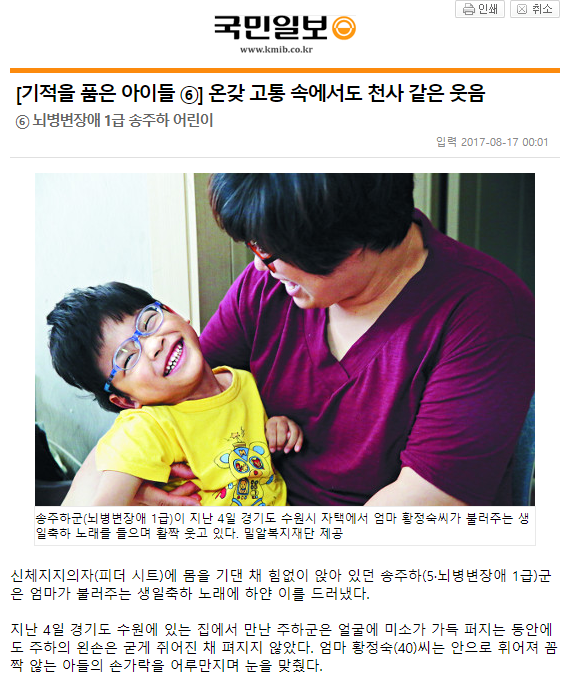 [국민일보] [기적을 품은 아이들 ⑥] 온갖 고통 속에서도 천사 같은 웃음