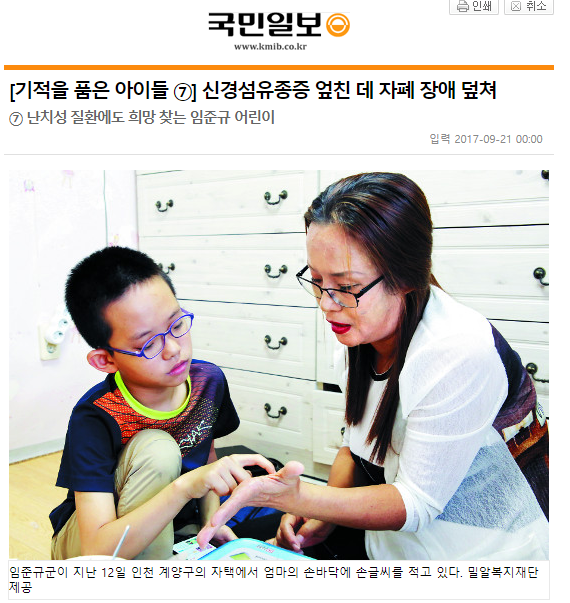 [국민일보] [기적을 품은 아이들 ⑦] 신경섬유종증 엎친 데 자폐 장애 덮쳐