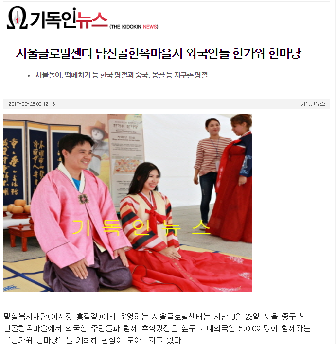 [기독인뉴스] 서울글로벌센터, 외국인 주민과 남산골한옥마을서 ‘한가위 한마당’