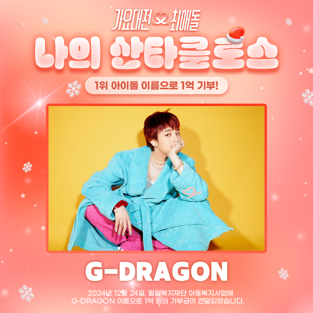 원이 기부되는 이벤트로, 지드래곤이 1위를 차지하면서 밀알복지재단에 1억 원을 기부하게 됐다.