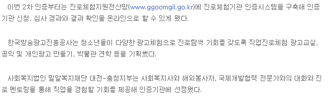[뉴스원] 우수진로체험 프로그램 제공 공공기관·기업 236곳 선정