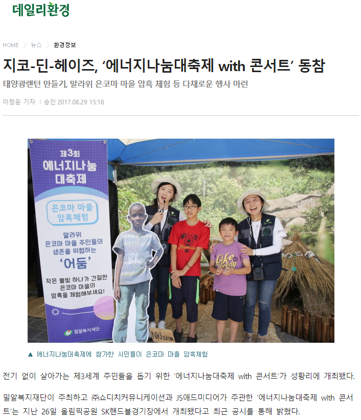 [데일리환경] 지코-딘-헤이즈, ‘에너지나눔대축제 with 콘서트’ 동참