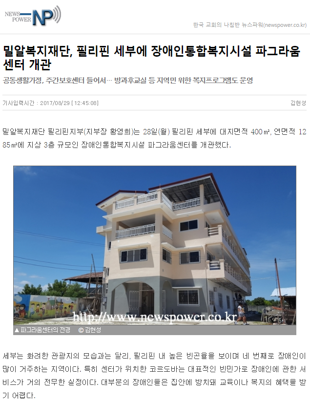 [국민일보] 밀알복지재단 필리핀지부, 장애인통합복지시설 개관