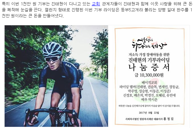 [오센] 진태현, 기부라이딩으로 천만원 기부 '훈훈 선행'