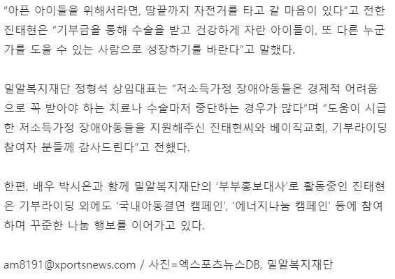 [뉴스앤미디어] 진태현 기부라이딩, 저소득 장애아동 위해 1천만원 기부
