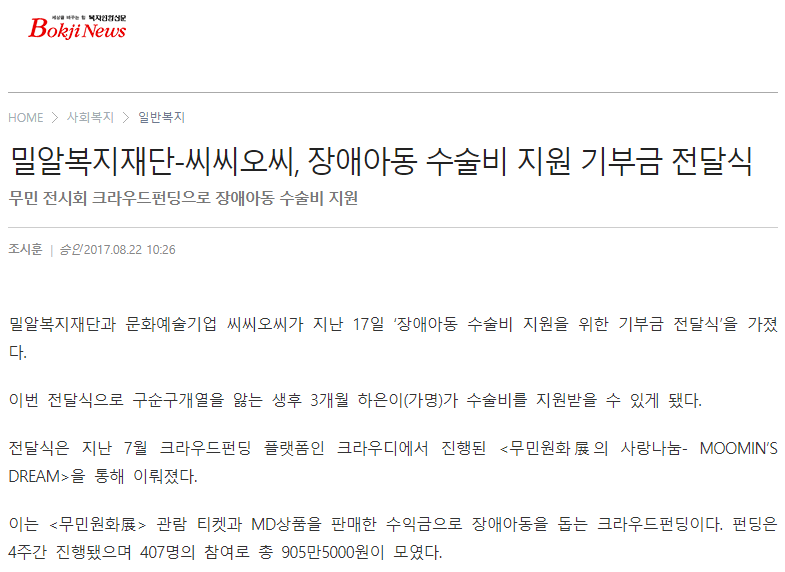 [복지연합신문] 밀알복지재단-씨씨오씨, 장애아동 수술비 지원 기부금 전달식