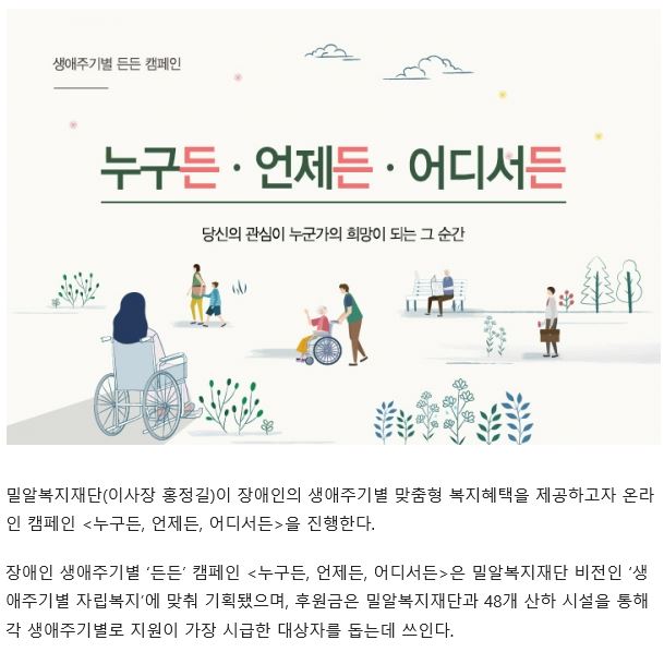 [크리스천투데이] 밀알복지재단, 장애인 생애주기별 ‘든든’ 캠페인 진행