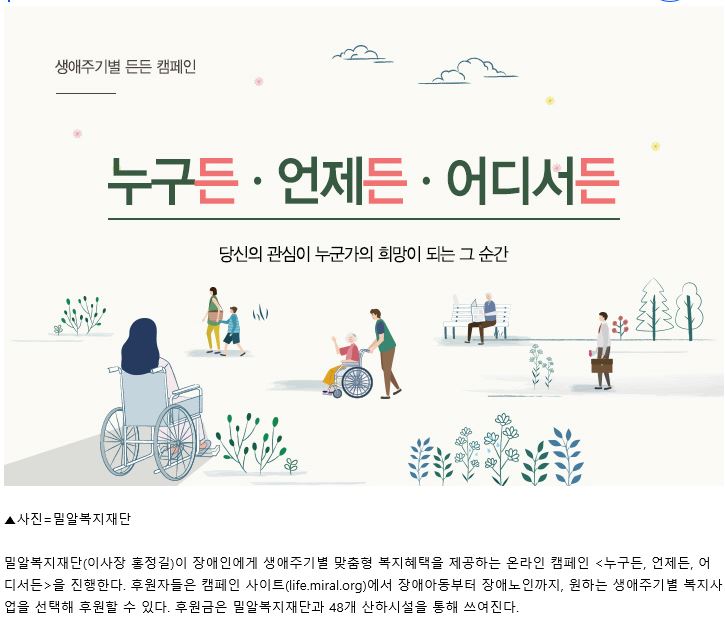 [e뉴스페이퍼] 밀알복지재단, 장애인 생애주기별 든든 캠페인 진행