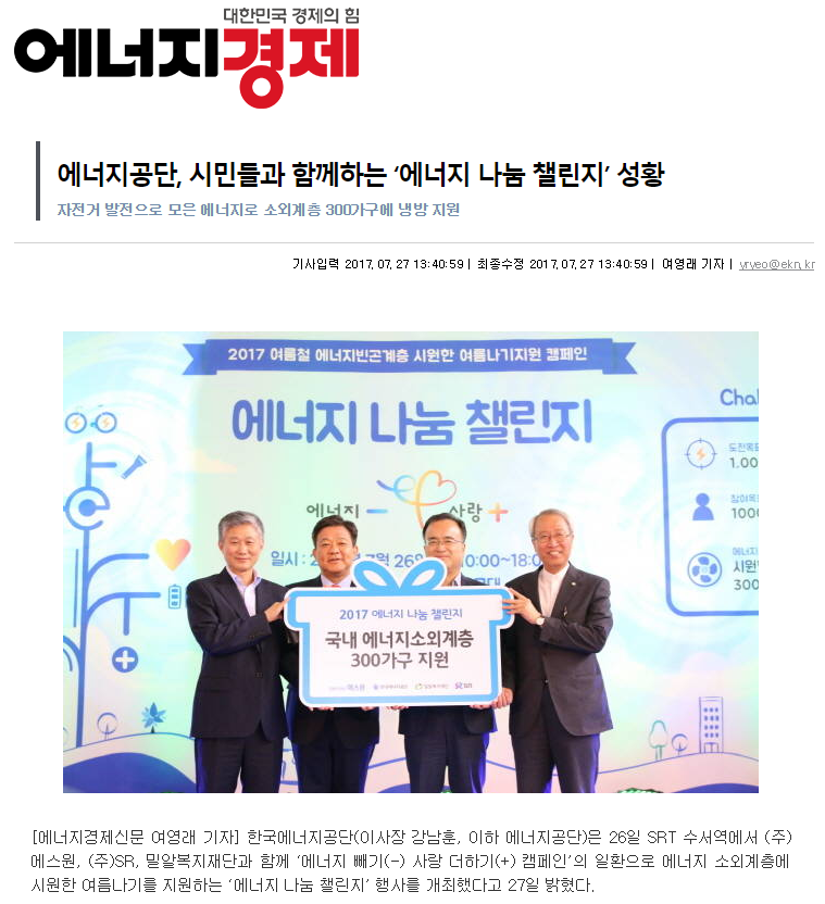 [복지연합신문] 밀알복지재단, 에너지 소외계층 위한 ‘에너지 나눔 챌린지’ 성료